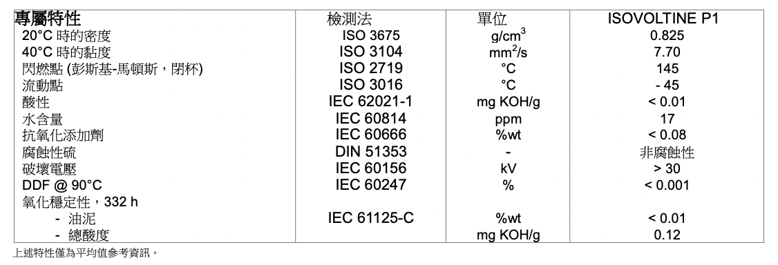 - ISOVOLTINE P1 油品為適用於變壓器、開關設備、斷路器、焊接設備和所有高電 壓電氣設備的抑制礦物油。