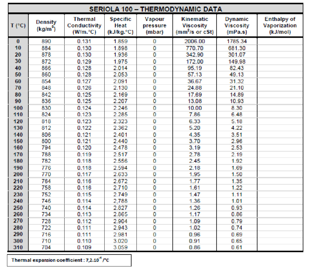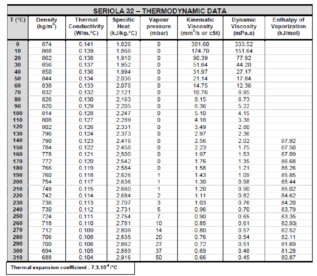 | 代表特性TYPICAL CHARACTERISTICS | 檢測法 METHODS | 單位 UNITS | SERIOLA 32 | SERIOLA 100 |