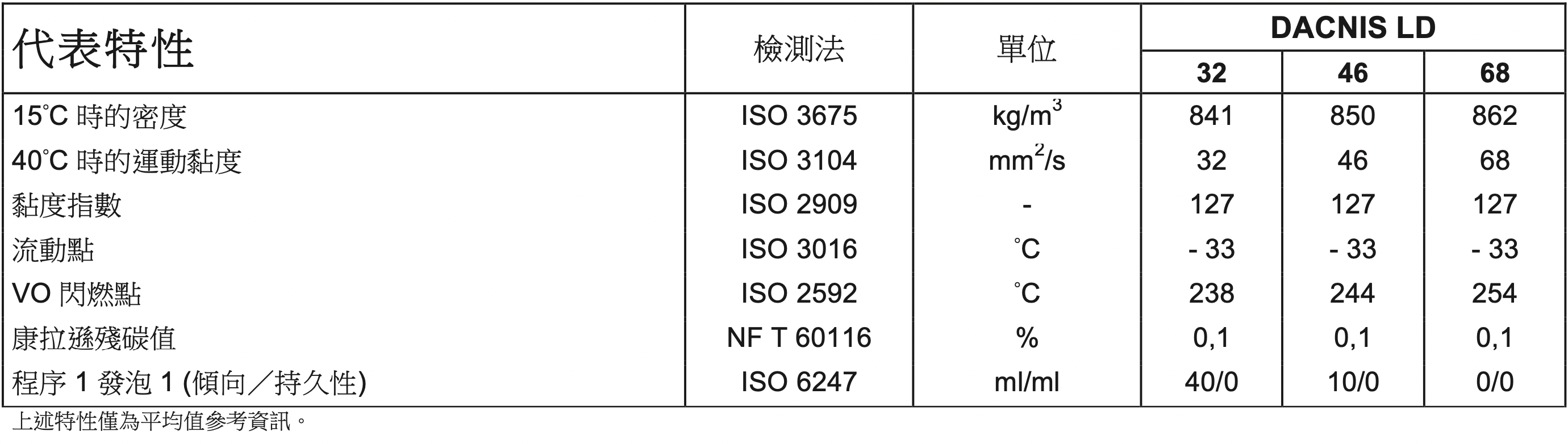 | DACNIS SH 32 DACNIS SH 46 DACNIS SH 68 DACNIS SH 100 PAO 型合成空氣壓縮機油 ( 1 / 4 ) |